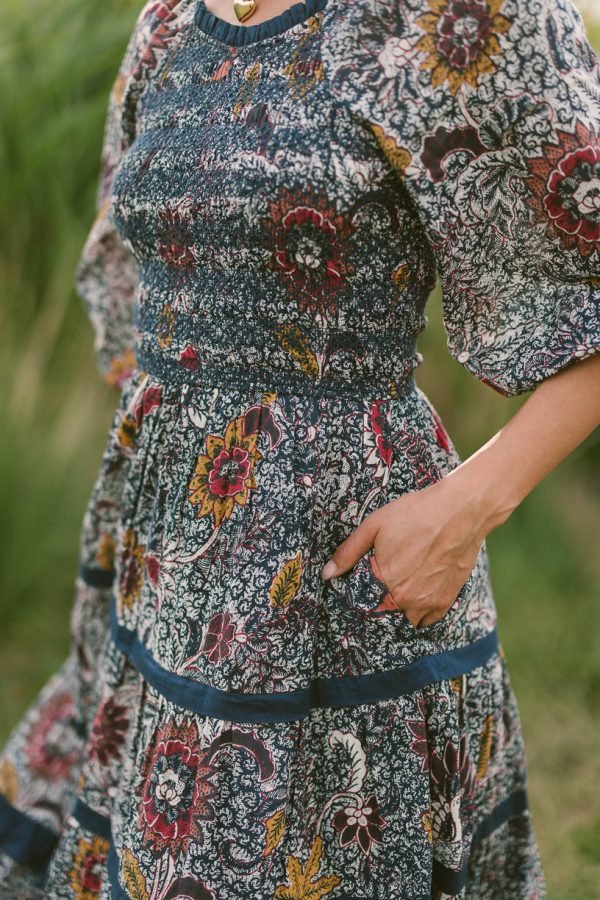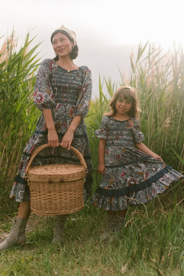 Look out! Our best-selling Roselyn Dress is back in a stunning navy floral! She’s 100% cotton. ankle length with a 3/4 sleeve and features front and back smocking – making it comfortable and fashionable! Oh and did we mention this women’s dress is both maternity friendly and nursing friendly? This one will go FAST! Shop adult + mini sizes now!